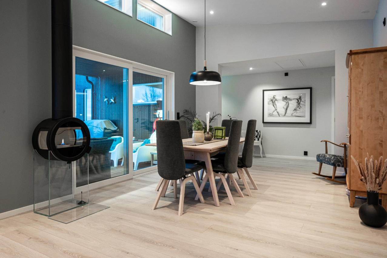 En moderne livsløpsbolig i Stonesveien. Boligen er bygget på ett plan med en funksjonell og tilgjengelig planløsning som gjør den tilpasset alle livsfaser. Løsningene gir enkel adkomst, gode romløsninger og et tidsriktig uttrykk.